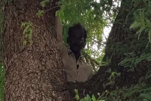 వ్యాక్సిన్ కు భయపడి చెట్టెక్కిన గ్రామస్తుడు (Image credit : Twitter)